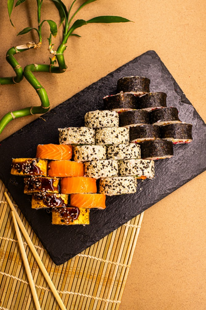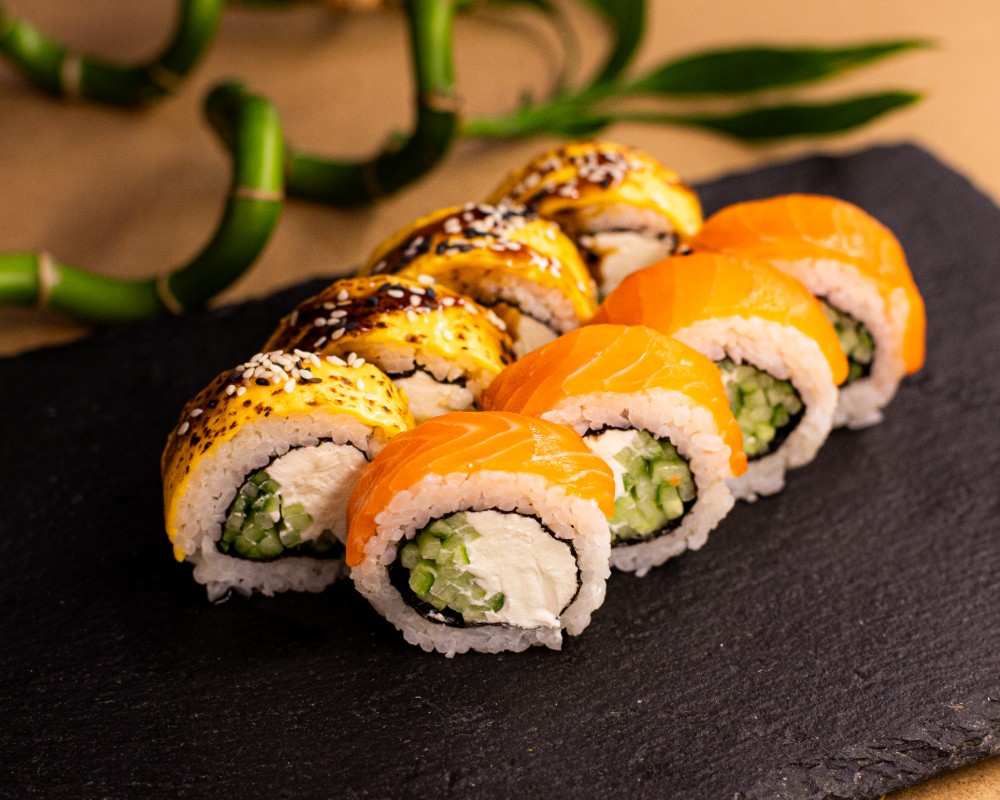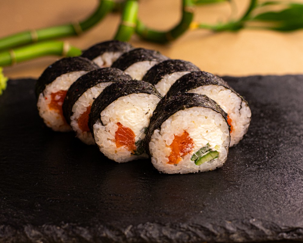 - Юмі (лосось копчений, ікра масаго зелена, чорнила каракатиці, преміум крем сир)